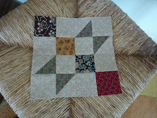 The second BOM is already done! First I thought I couldn't make this out of my scraps. But after a lot of thinking ,I saw the light, and found a way. I was surprised how it turned out. Like the color combination. If you want to join this online BOM (it's easy, and really just 1 block a month) just go to this link CLICK